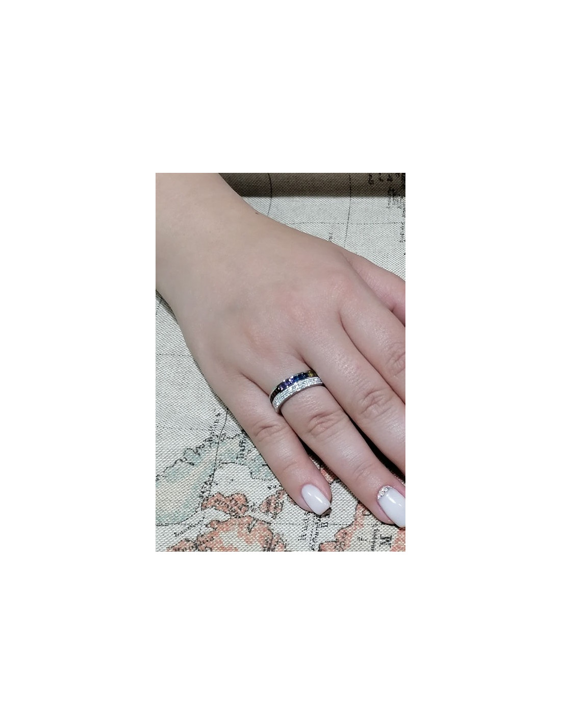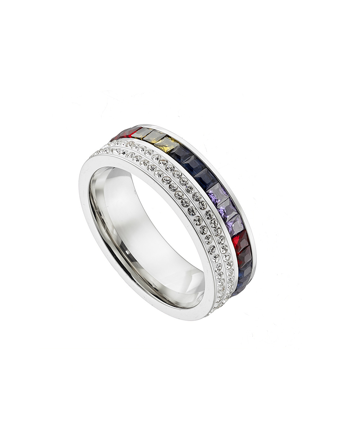 Ολόβερο δαχτυλίδι από ατσάλι 316L με δύο σειρές διαφανών κρυστάλλων, και μια σειρά από πολύχρωμες πέτρες