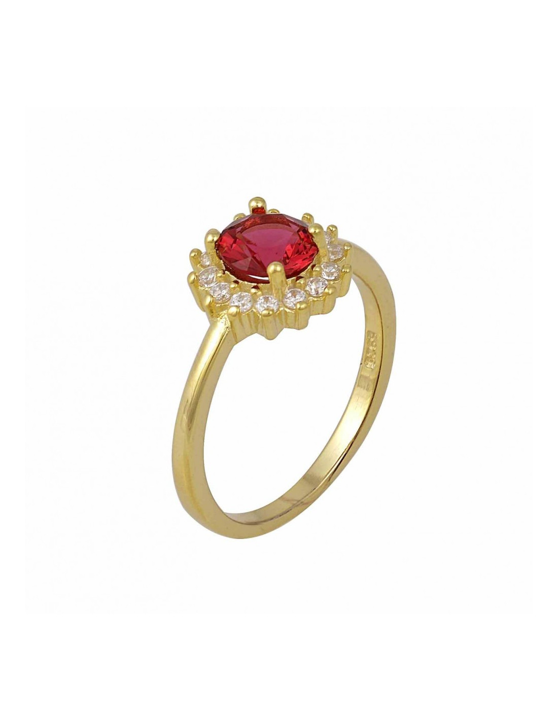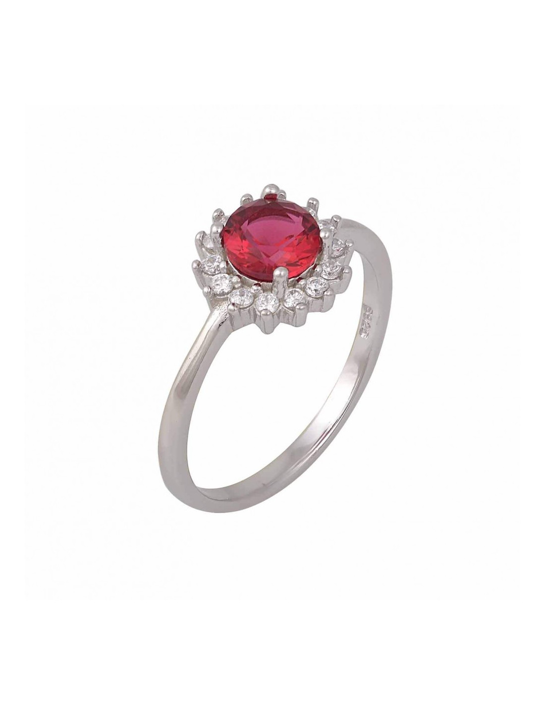 Αναδείξτε την κομψότητά σας με αυτό το εκθαμβωτικό δαχτυλίδι, διακοσμημένο με κεντρικό κόκκινο ζιργκόν και περίτεχνη στεφάνη από μικρές λαμπερές πέτρες. Η διαχρονική του σχεδίαση το καθιστά ιδανικό για καθημερινή χρήση αλλά και για ιδιαίτερες περιστάσεις.