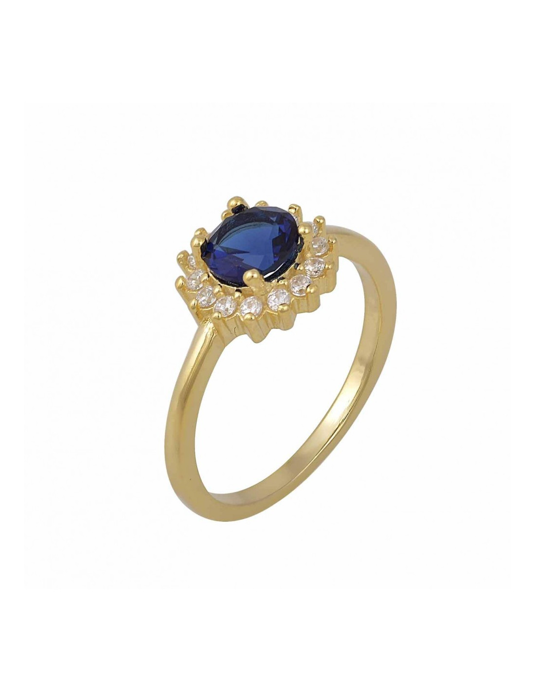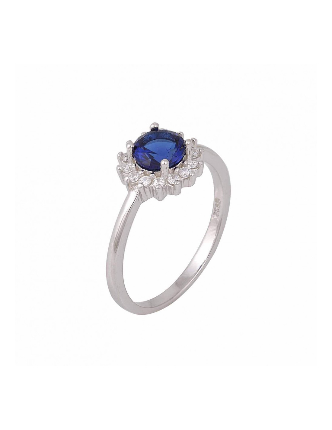 Αναδείξτε την κομψότητά σας με αυτό το εκθαμβωτικό δαχτυλίδι, διακοσμημένο με κεντρικό μπλε ζιργκόν και περίτεχνη στεφάνη από μικρές λαμπερές πέτρες. Η διαχρονική του σχεδίαση το καθιστά ιδανικό για καθημερινή χρήση αλλά και για ιδιαίτερες περιστάσεις.