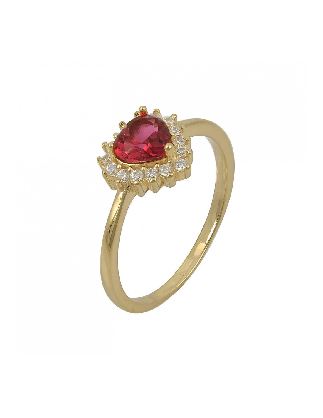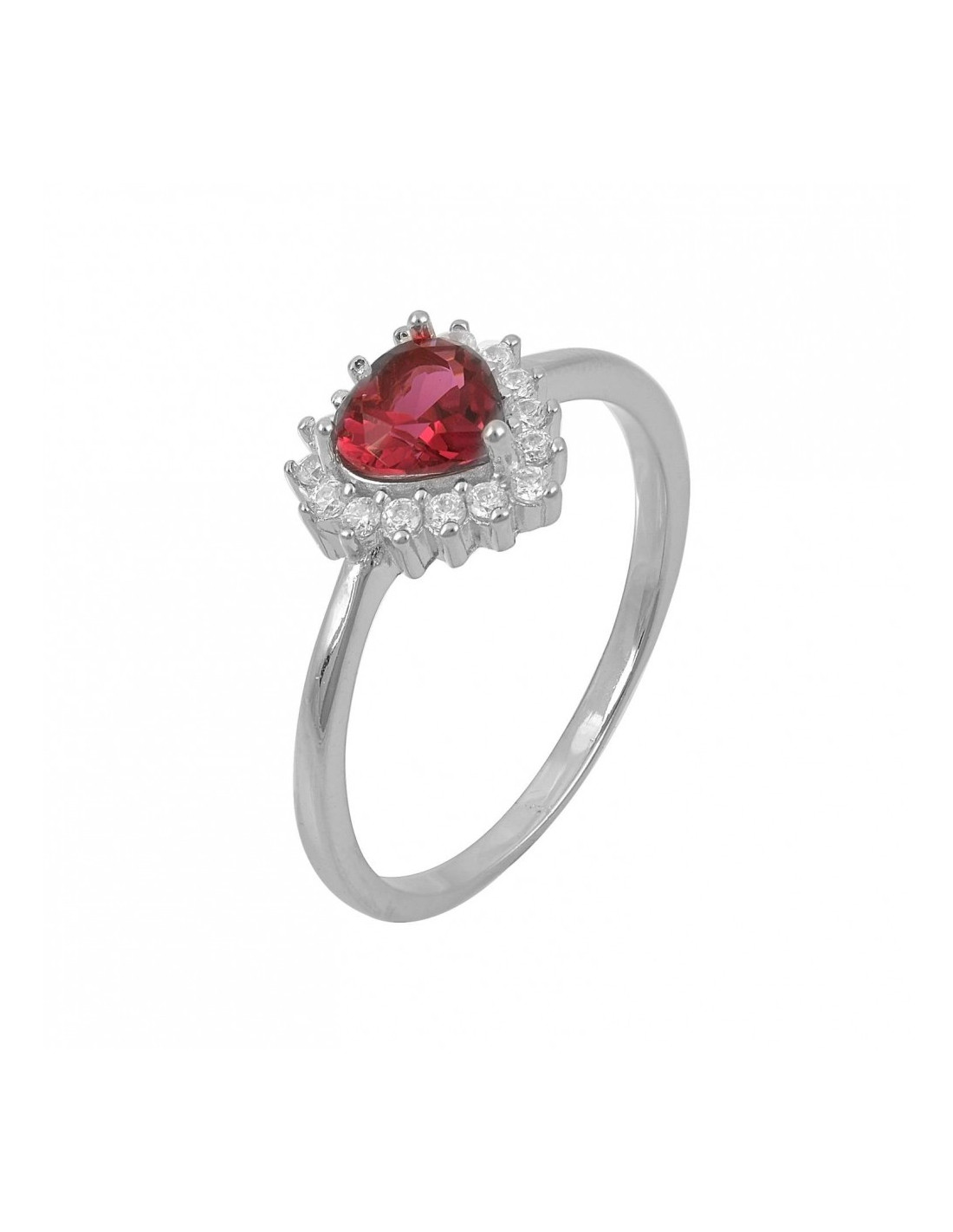 Αναδείξτε την κομψότητά σας με αυτό το εκθαμβωτικό δαχτυλίδι, διακοσμημένο με κόκκινο κεντρικό ζιργκόν καρδιά και περίτεχνη στεφάνη από μικρές λαμπερές πέτρες. Η διαχρονική του σχεδίαση το καθιστά ιδανικό για καθημερινή χρήση αλλά και για ιδιαίτερες περιστάσεις.