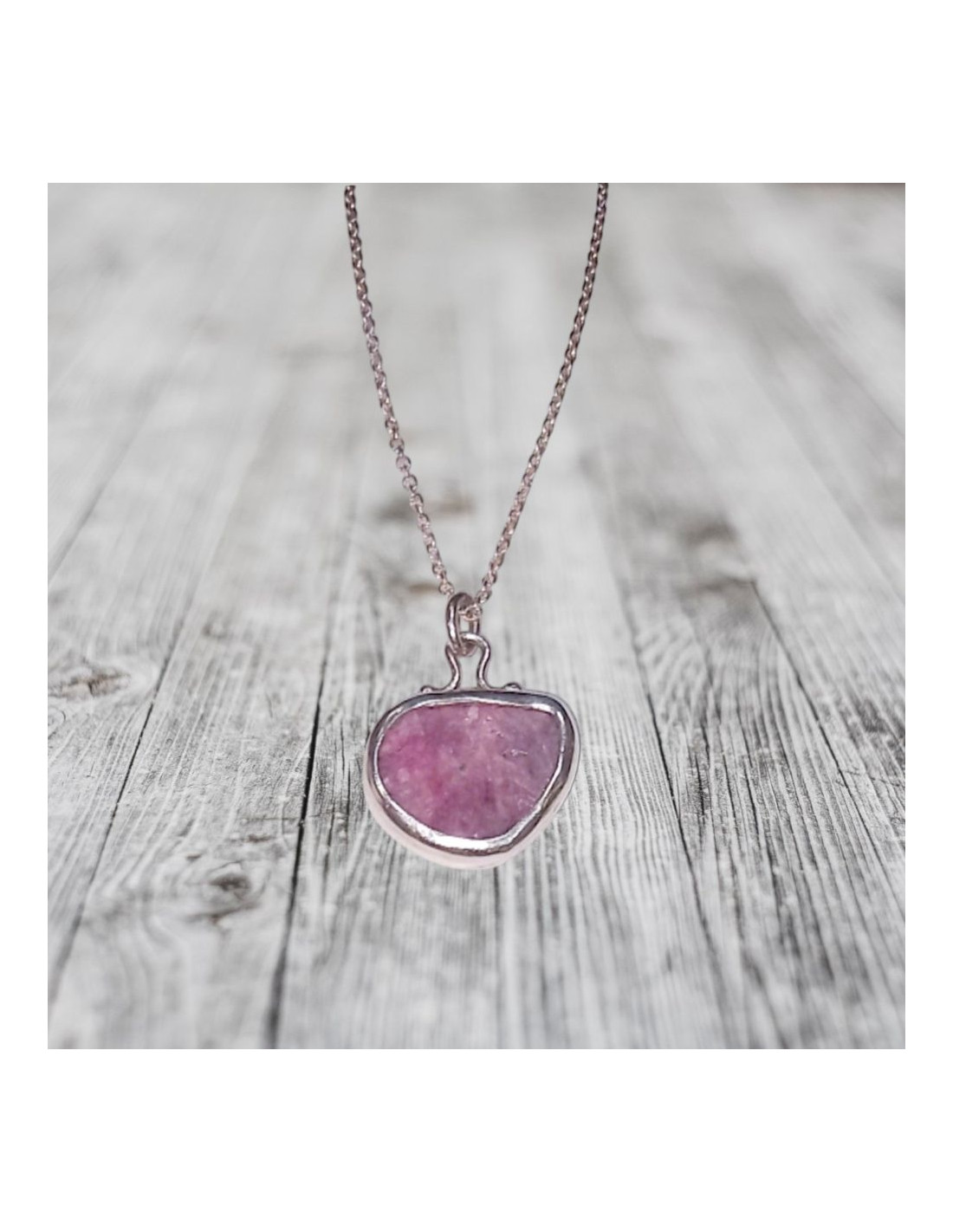 Χειροποίητο ασημένιο κολιέ με φυσική πέτρα pink quartz, γνωστή για τη διακριτική της λάμψη και τη ρομαντική της απόχρωση. Κάθε κομμάτι είναι μοναδικό, αναδεικνύοντας την αυθεντική ομορφιά της πέτρας. Ιδανικό για καθημερινές εμφανίσεις ή ως ξεχωριστό δώρο που προσθέτει κομψότητα και θηλυκότητα σε κάθε στυλ.